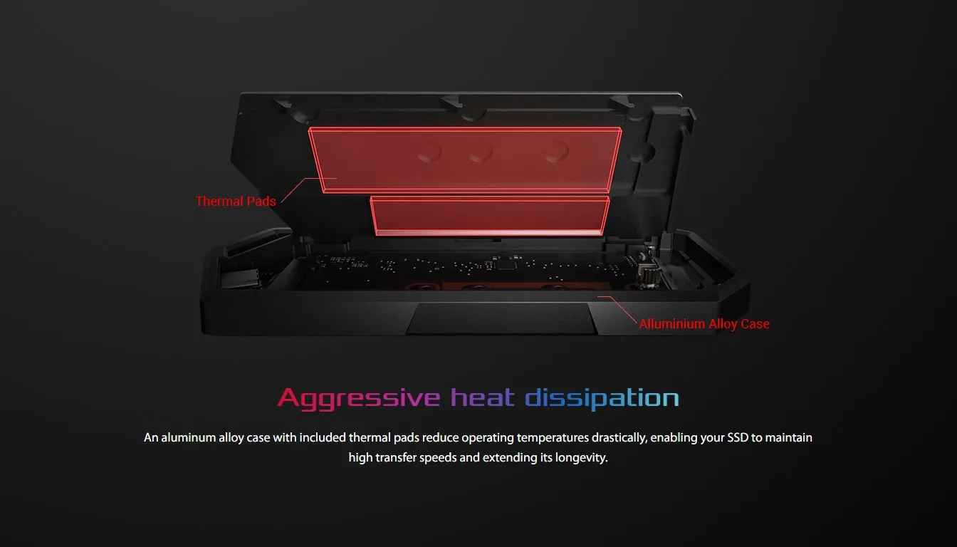 - Effiziente Wärmeableitung durch Aluminiumgehäuse und hochwertige Thermal Pads.